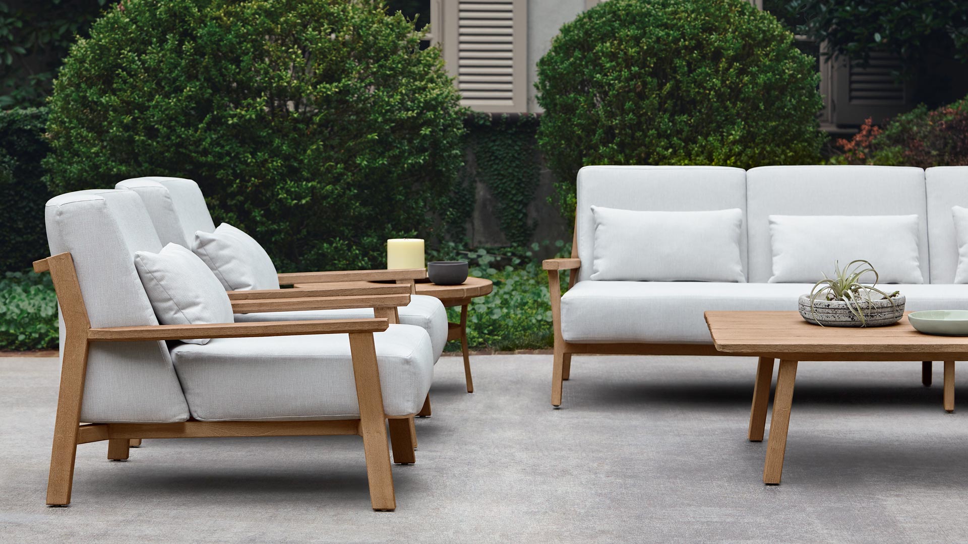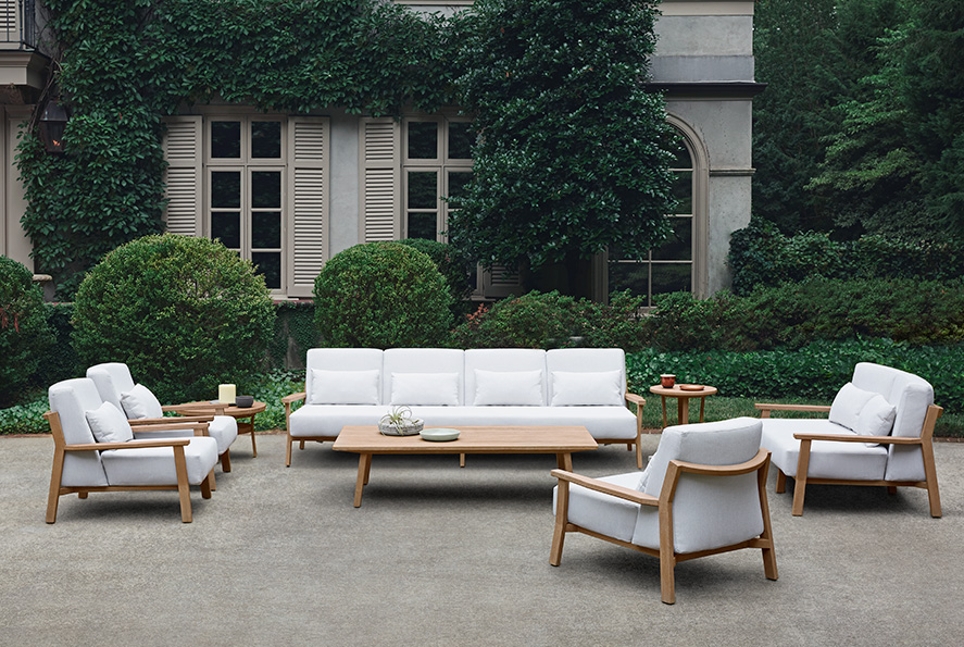 Designer Monica Armani mixes the masculine and feminine with curves and angles that create deeply pleasing visual rhythms in this collection. Topanga has a bohemian vibe of comfort and style inspired by its California roots. Made of premium grade teak with custom molded cushions, it’s an ideal setting to kickback and watch a sunset.