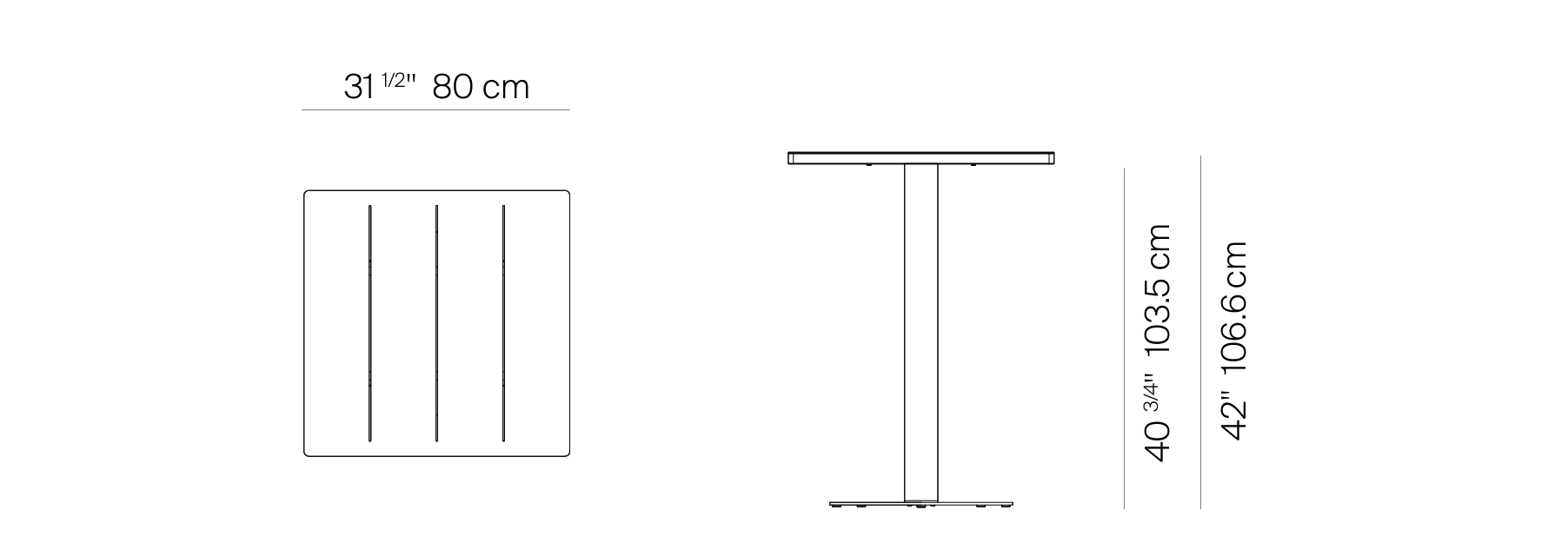 Greenwich Bar Table Pedestal SQ 31,5″ Aluminum Top