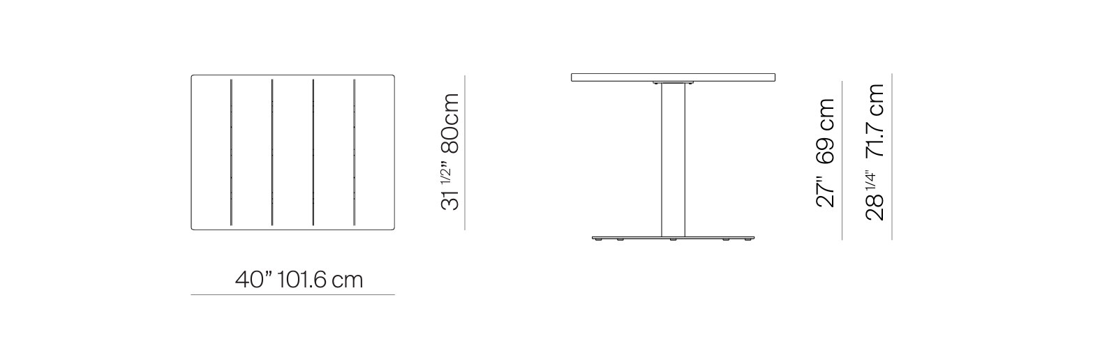 Greenwich Cafe Table Pedestal Rect Aluminum 40″