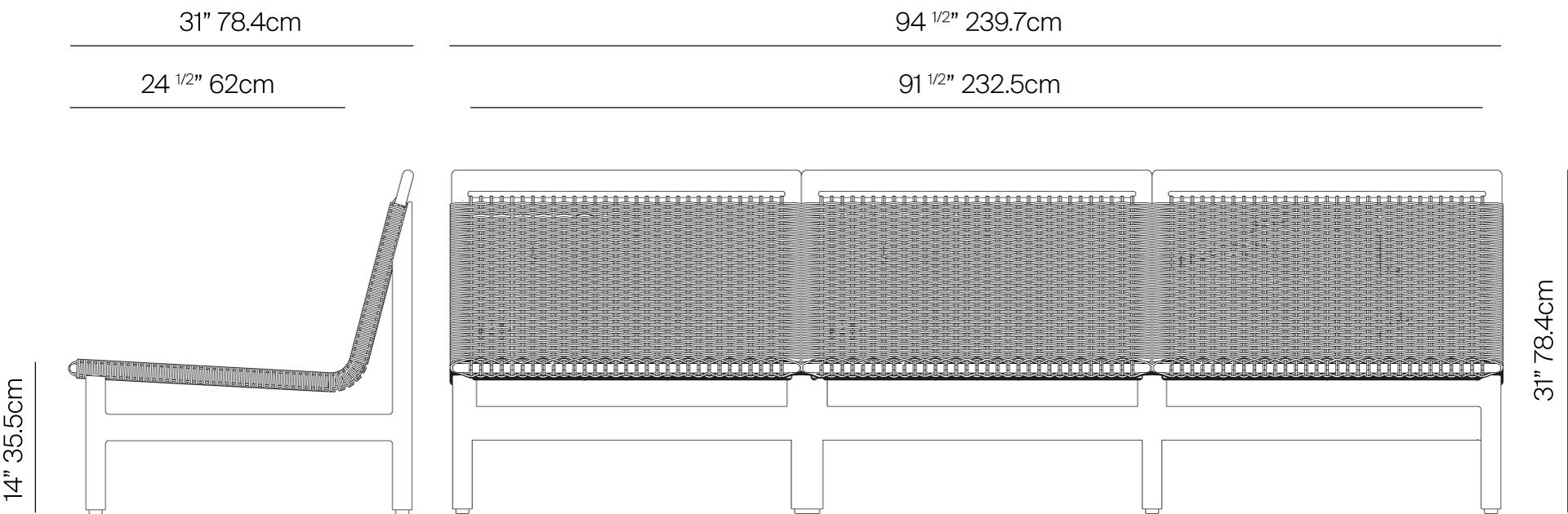 Montauk Sofa Armless Aluminum 94″