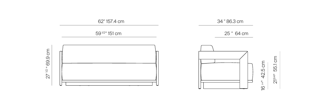 S2 Sofa Aluminum 62″