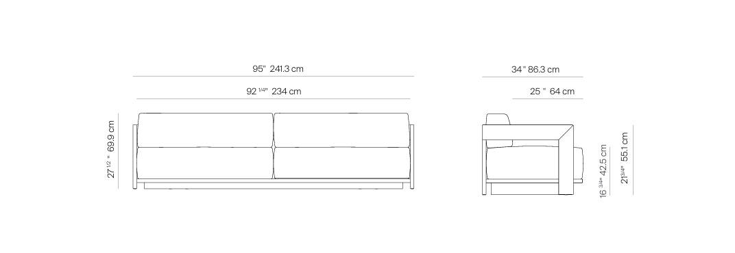S2 Sofa Aluminum 95″