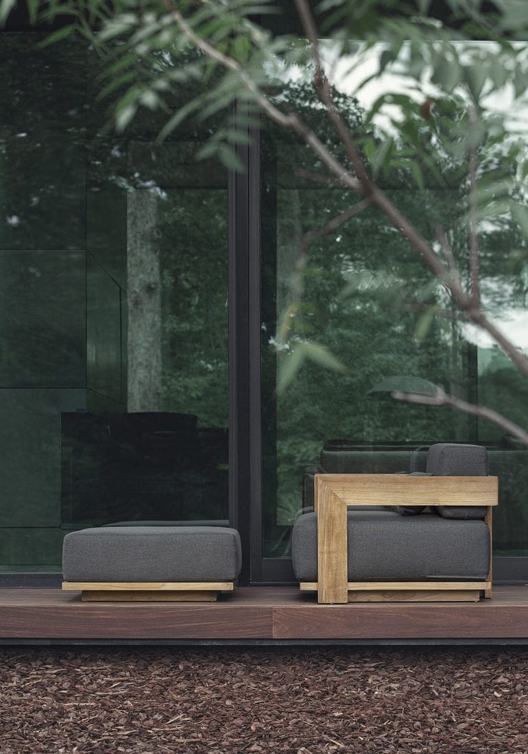 The high style and sophistication of S2 make it a perfect choice of outdoor seating to enhance a distinctive lifestyle. Sparked by modern architectural elements that Ann Vering originally conceived for a glass and teak hotel facade, the main design details of the Collection are two elements that rise up and divide out, connected solely by a stainless steel rod.