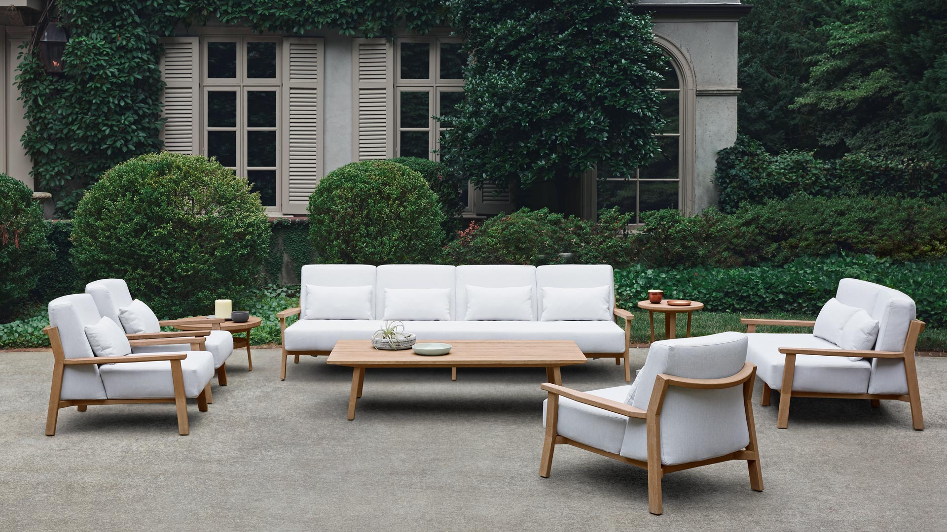 Designer Monica Armani mixes the masculine and feminine with curves and angles that create deeply pleasing visual rhythms in this collection. Topanga has a bohemian vibe of comfort and style inspired by its California roots. Made of premium grade teak with custom molded cushions, it’s an ideal setting to kickback and watch a sunset.